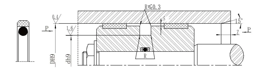 పిస్టన్ల (బోర్) కోసం స్క్వేర్ కాంబినేషన్ సీల్ (గ్లైడ్ రింగ్ సీల్) PTFE నిండిన దీర్ఘచతురస్రాకార సీలింగ్ రింగ్ మరియు O-రింగ్ను కలిగి ఉంటుంది. ఇది రెసిప్రొకేటింగ్ హైడ్రాలిక్ మోషన్లో ద్వి దిశాత్మక పీడన సీలింగ్కు అనుకూలంగా ఉంటుంది. O-రింగ్ రేడియల్ ఫోర్స్ను అందిస్తుంది మరియు సీల్ రింగ్ దుస్తులు ధరిస్తుంది. ఇది సాధారణంగా గైడ్ రింగ్తో కలిపి ఉపయోగించబడుతుంది. 30mm కంటే తక్కువ సిలిండర్ వ్యాసాల కోసం, ఒక స్ప్లిట్ (ఓపెన్) గాడి రూపకల్పనను ఉపయోగించాలి.