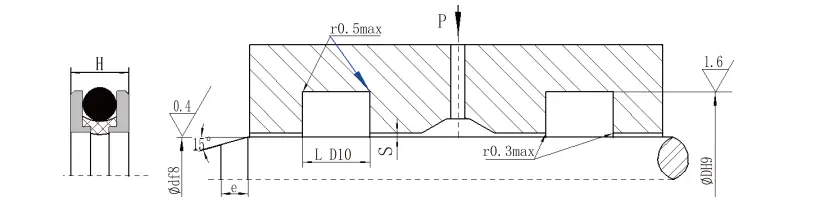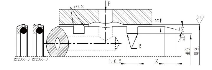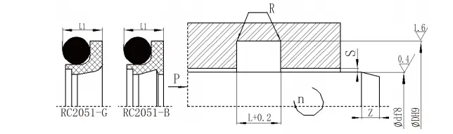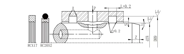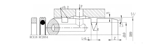 RC2054| ఎపర్చరు పరిధి D H9 | గాడి వ్యాసం D H9 | గాడి వెడల్పు ఎల్+0.2 | రేడియల్ క్లియరెన్స్ sగరిష్టంగా | గుండ్రని మూలలు Rగరిష్టంగా | చామ్ఫర్ Z.నిమి | |