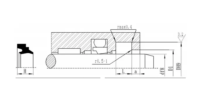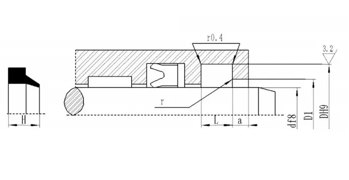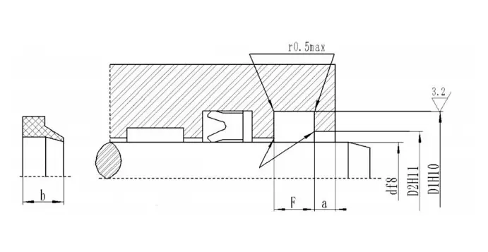 దుమ్ము ముద్ర GSM ఆర్డర్ సంఖ్యతో గుర్తించబడింది, ఉదాహరణ: GSM4048 40-షాఫ్ట్ వ్యాసం D 48-GROOVE దిగువ వ్యాసం D.
