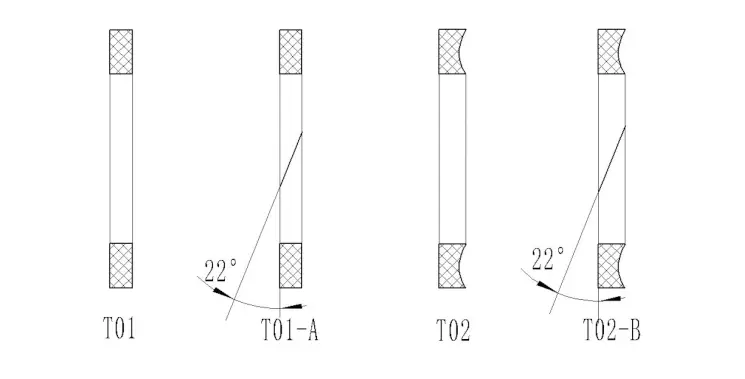 (2) T02 సిరీస్ రిటైనింగ్ రింగులు లోపలి వ్యాసం D1, వెడల్పు W, మరియు మందం A మరియు T.