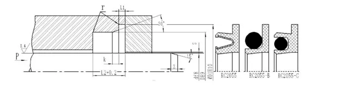 RC2055 మరియు RC2056 రోటరీ పాన్-సీల్స్, RC2055-B అనేది రోటరీ టూత్ సీల్, RC2056-B అనేది రోటరీ Y- ఆకారపు కలయిక ముద్ర, మరియు RC2055-C అనేది రోటరీ Y- ఆకారపు కాంబినేషన్ సీల్. ఒకే శ్రేణిలోని వేర్వేరు నమూనాలు ఒకే గాడి లక్షణాలను కలిగి ఉంటాయి మరియు పరస్పరం మార్చుకోగలవు. తిరిగే షాఫ్ట్ కోసం స్ప్రింగ్ ఎనర్జైజ్డ్ సీల్ యొక్క మొత్తం శ్రేణి ఏకదిశాత్మక పీడనం అధిక-ఫంక్షన్ ముద్రలకు అనుకూలంగా ఉంటుంది, ఇది తిరిగే షాఫ్ట్లకు వర్తించబడుతుంది. వాటిలో, RC2055 మరియు RC2056 స్టెయిన్లెస్ స్టీల్ స్ప్రింగ్స్ మరియు హై-ఫంక్షన్ ప్లాస్టిక్లతో కూడి ఉన్నాయి. RC2055-B, RC2056-B మరియు RC2055-C ను ఉపయోగిస్తున్నప్పుడు, సరిపోయే ఎలాస్టోమర్ పదార్థాన్ని సహేతుకంగా ఎంచుకోవడం అవసరం.