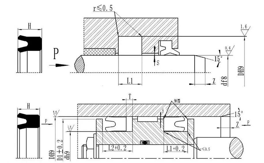 UHS U-సీల్ అనేది బోర్ మరియు షాఫ్ట్ అప్లికేషన్ల కోసం ఒక సుష్ట సీల్. ఇది చిన్న క్రాస్-సెక్షన్ కలిగి ఉంది మరియు సమగ్ర పొడవైన కమ్మీలలో వ్యవస్థాపించబడుతుంది. 16-32 MPa ఒత్తిడిలో ఉపయోగించినప్పుడు రూట్ వద్ద నిలుపుదల రింగ్ అవసరం.
